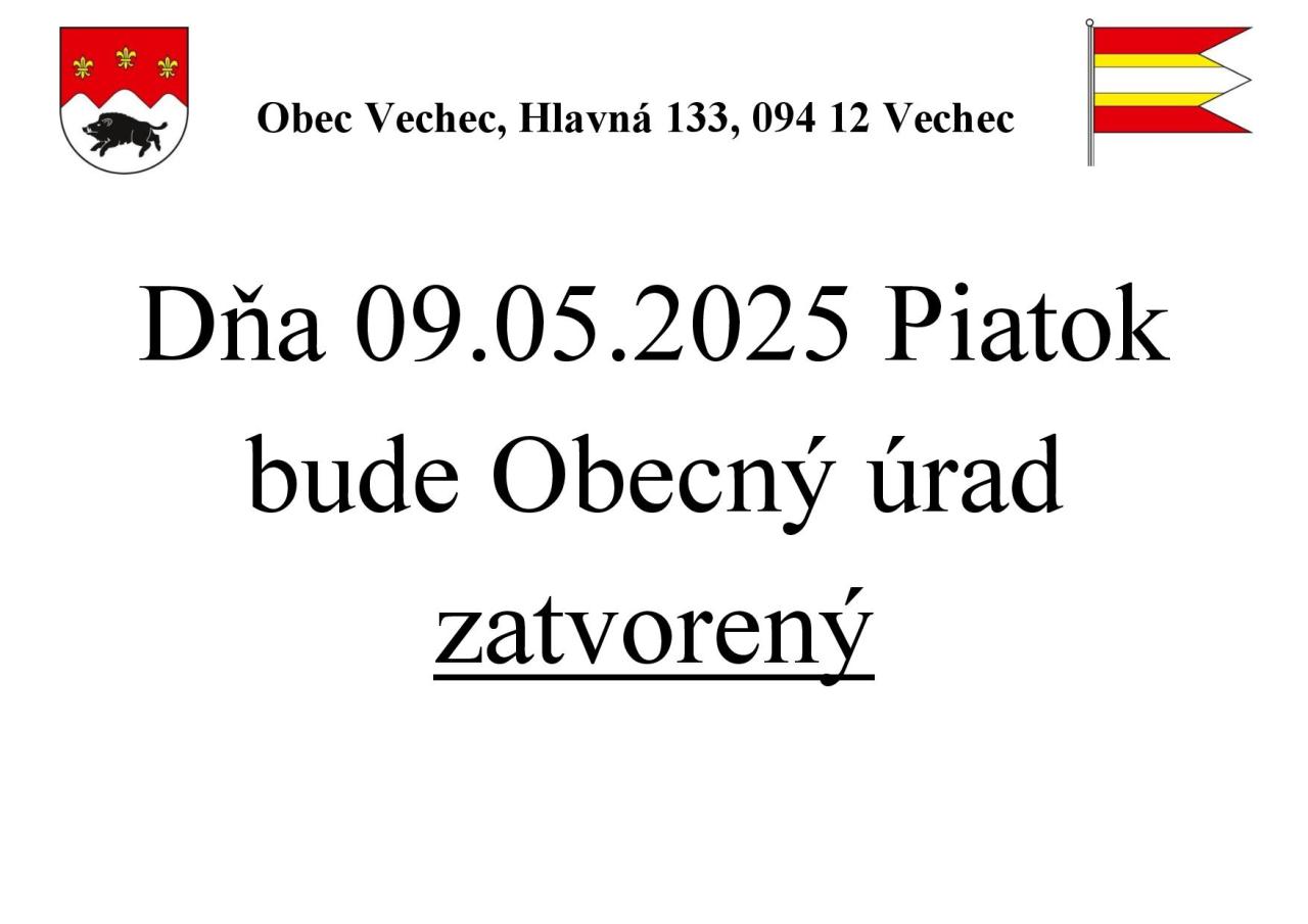 Oznam: Obecný úrad zatvorený 09.05.2025