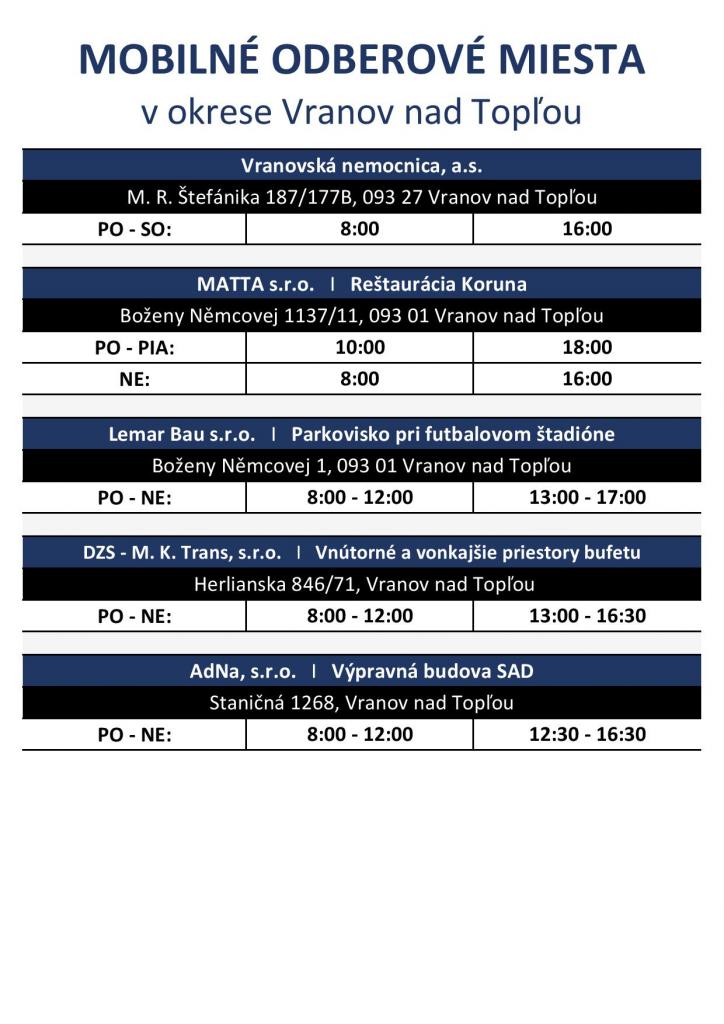 Vážený spoluobčania, upozorňujeme na aktualizovaný zoznam mobilných odberových miest v našom okrese.